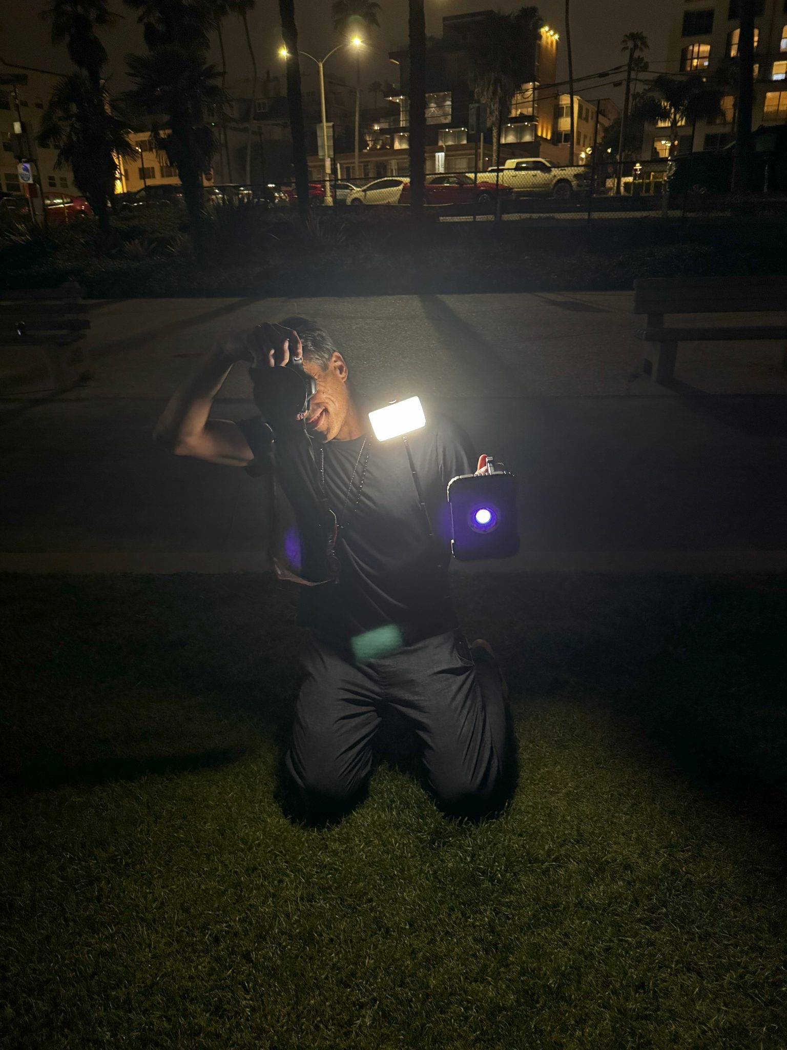 Here’s Matt working hard at 4 am to get the shot. He’s holding a blacklight, a camera and taking video!